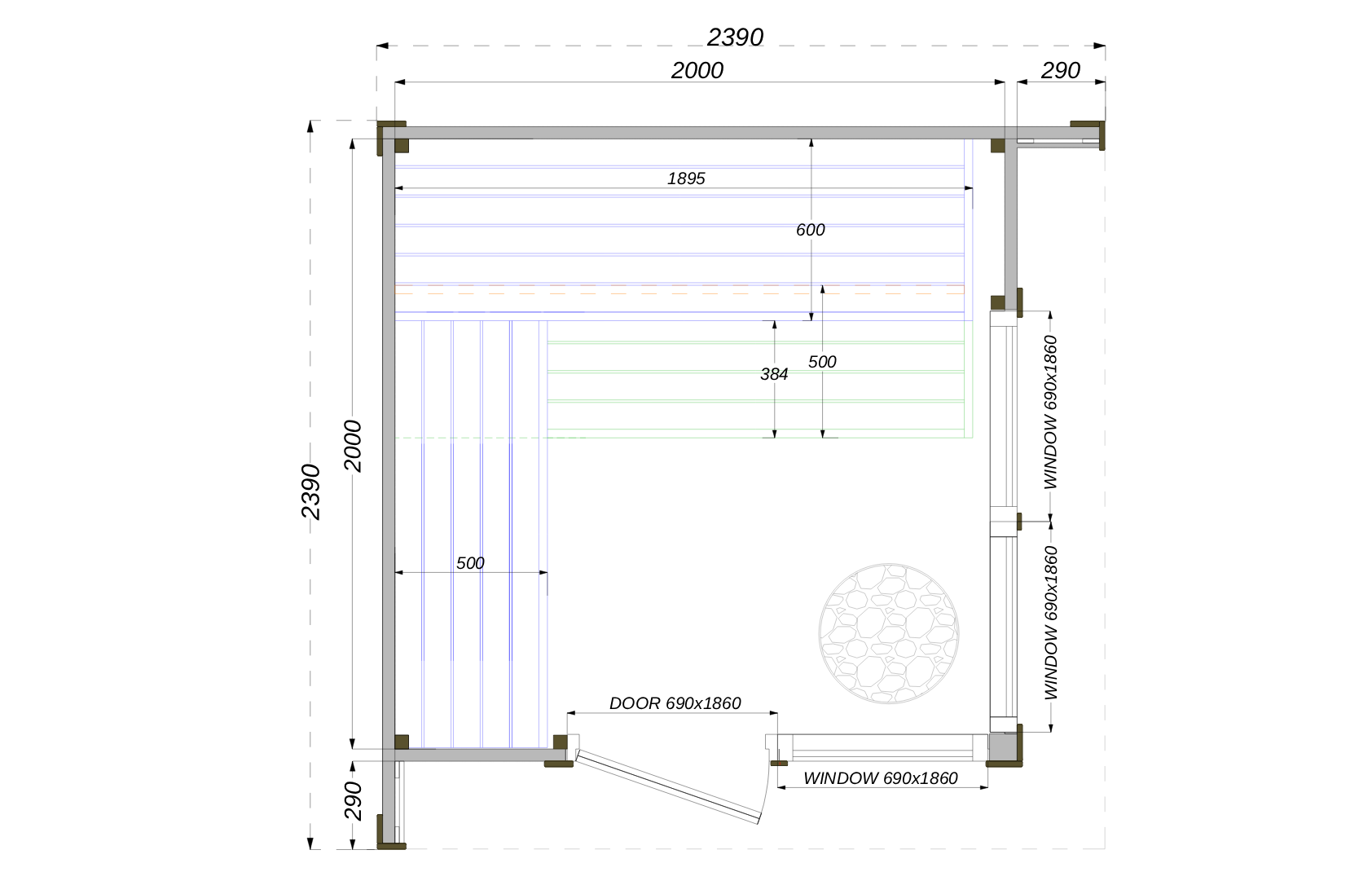 - Compleet geleverd met EPDM folie zwart incl. bijbehorende lijm, bevestigingsmateriaal, saunabank(en) en vloervlonder.